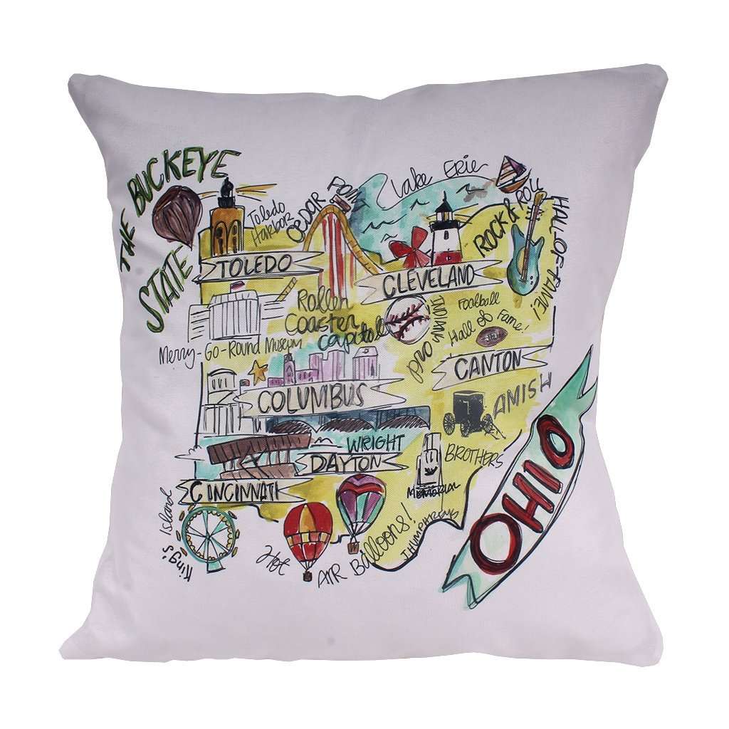 Ohio Roadmap Duck Cloth and Burlap Pillow by Southern Roots