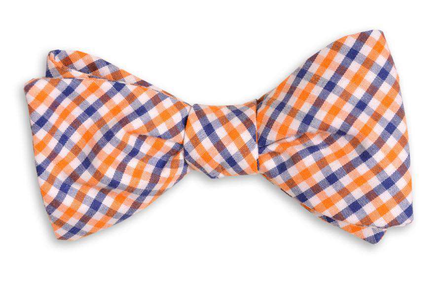 Orange and Navy Tattersall Bow Tie by High Cotton
