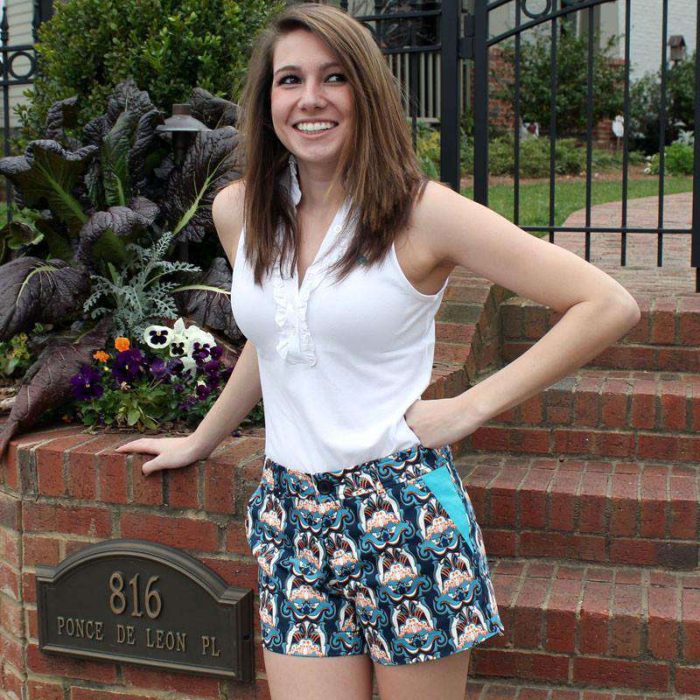 – 5” inseam- Stretch twill (97% Cotton/ 3% Spandex)- Machine washable- Pockets framed in turquoise- A full sizing chart is available on the