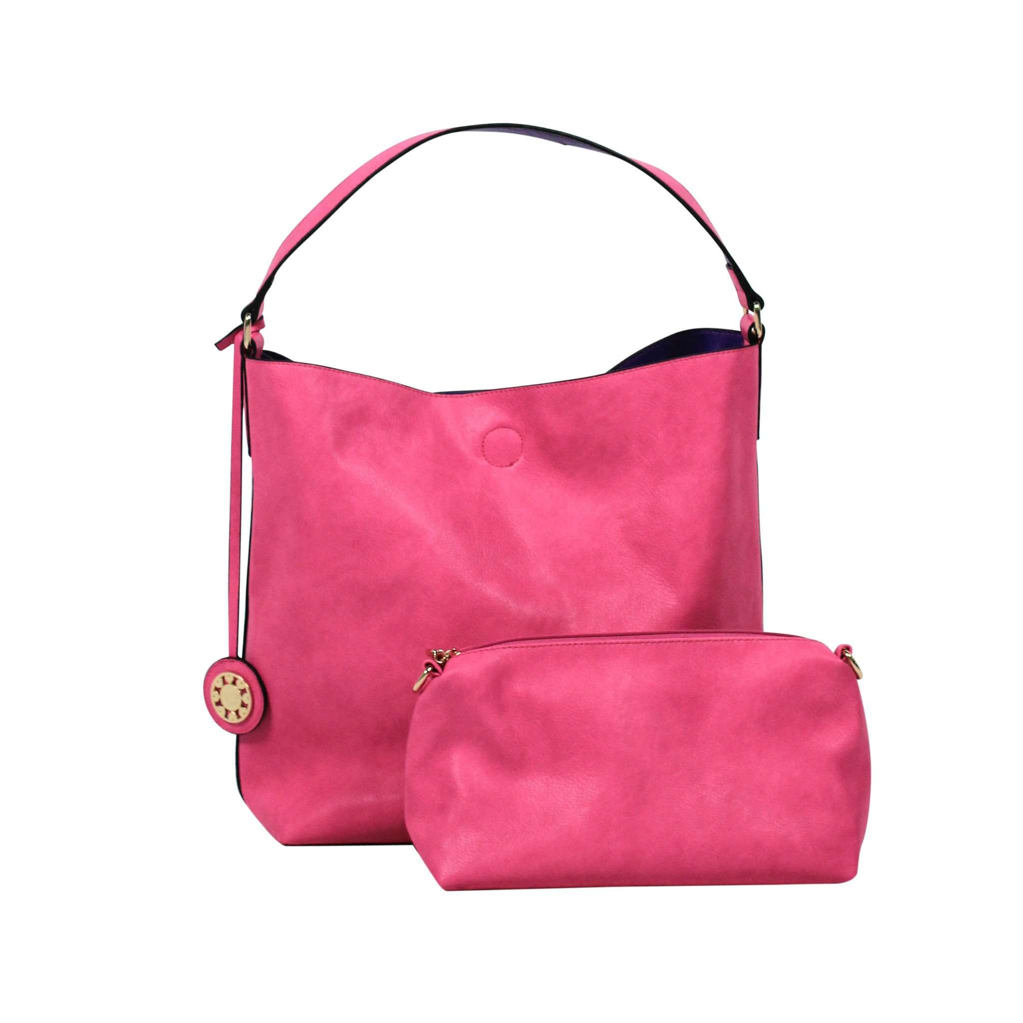 Be the first to review “Reversible Faux Leather Tote in Fuschia/Purple with Inner Cross Body Pouch by Street Level” Cancel reply