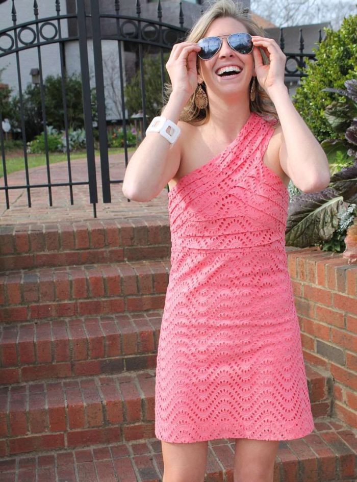 Serena Eyelet Dress in Coral by Tracy Negoshian