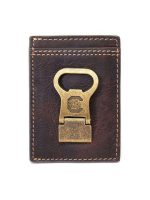 – Oiled and tumbled rich full grain leather construction – Contrast stitching – Molded metal money clip doubles as a bottle opener – Compact alternati