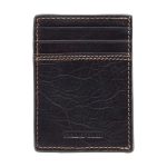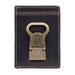 – Oiled and tumbled rich full grain leather construction – Contrast stitching – Molded metal money clip doubles as a bottle opener – Compact alternati