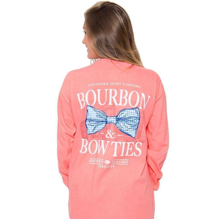 Bourbon & Bow Ties Long Sleeve Tee in Pink Salmon by The Southern Shirt Co.