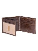 – Full grain leather construction – Contrast stitching – Vintage Brass hardware pressed with school name and printed within the bill compartment – Flip out panel with two ID windows – 8 card slots, 2 slip pockets, and a full width bio compartment