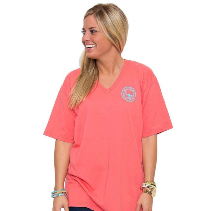 The Carly V-Neck Tee in Sugar Coral Pink by The Southern Shirt Co.