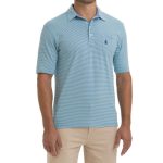 Striped short sleeve polo shirt with signature logo embroidery at chest