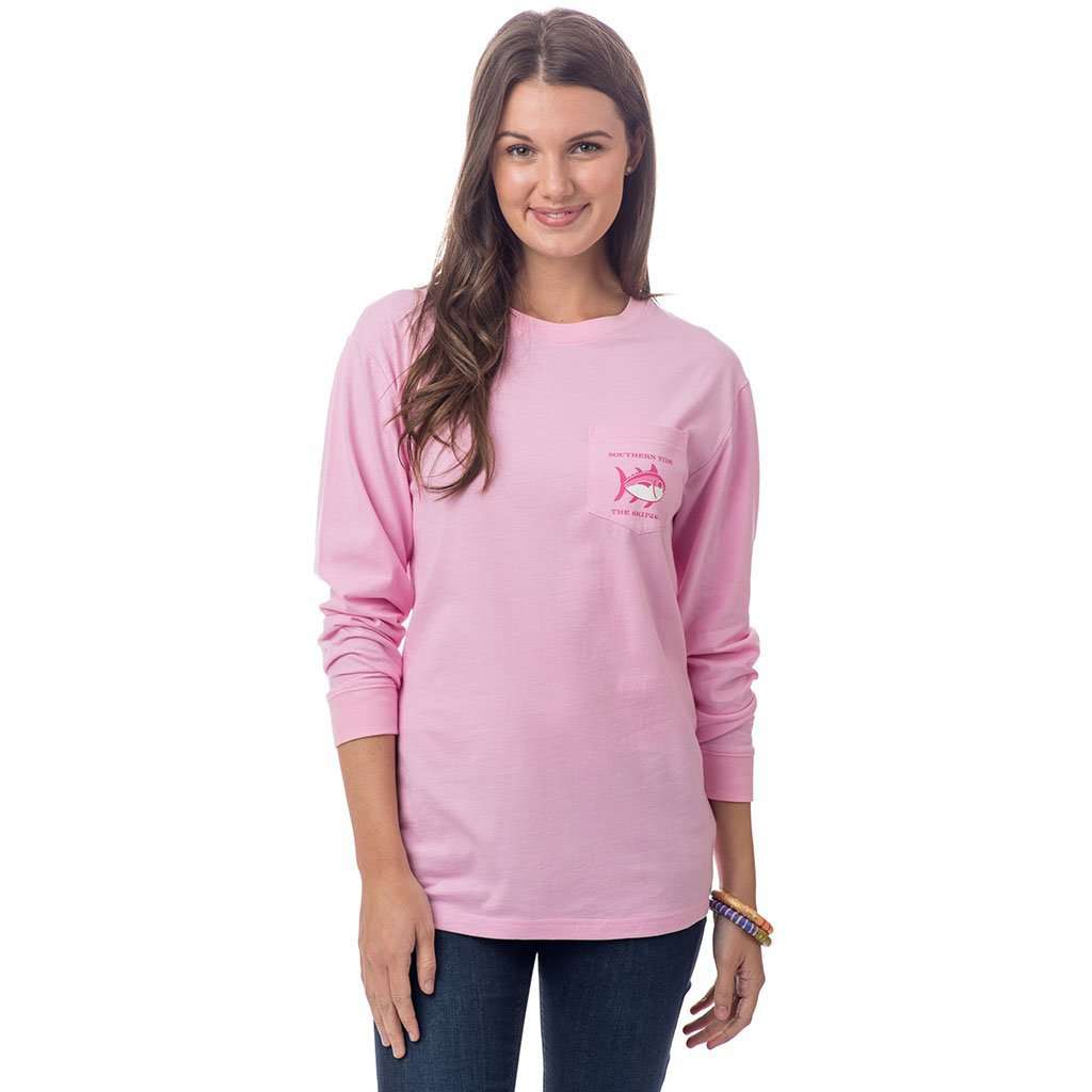 Women’s Original Skipjack Long Sleeve Pocket Tee in Lemonade Pink by Southern Tide